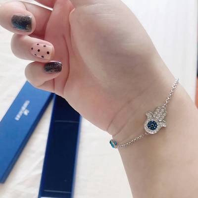 Pulseira swarovski symbolic, folhado em ouro rosê, decorado com sete pingentes que simbolizam a boa sorte e cravejados com os legítimos cristais swarovski, comprimento de 18,0 cm. Pulseira louison, branco, revestida em tom de ouro. Este diseño unisex lleva un medallón muy de moda con el motivo de la mano de fátima y un símbolo del infinito, que simbolizan protección y amor respectivamente. Check out our swarovski hamsa selection for the very best in unique or custom, handmade pieces from our jewellery making & beading shops. Swarovski power hamsa hand joia pulseira mulher.. R$ 499,00 r$ 299 ,00.